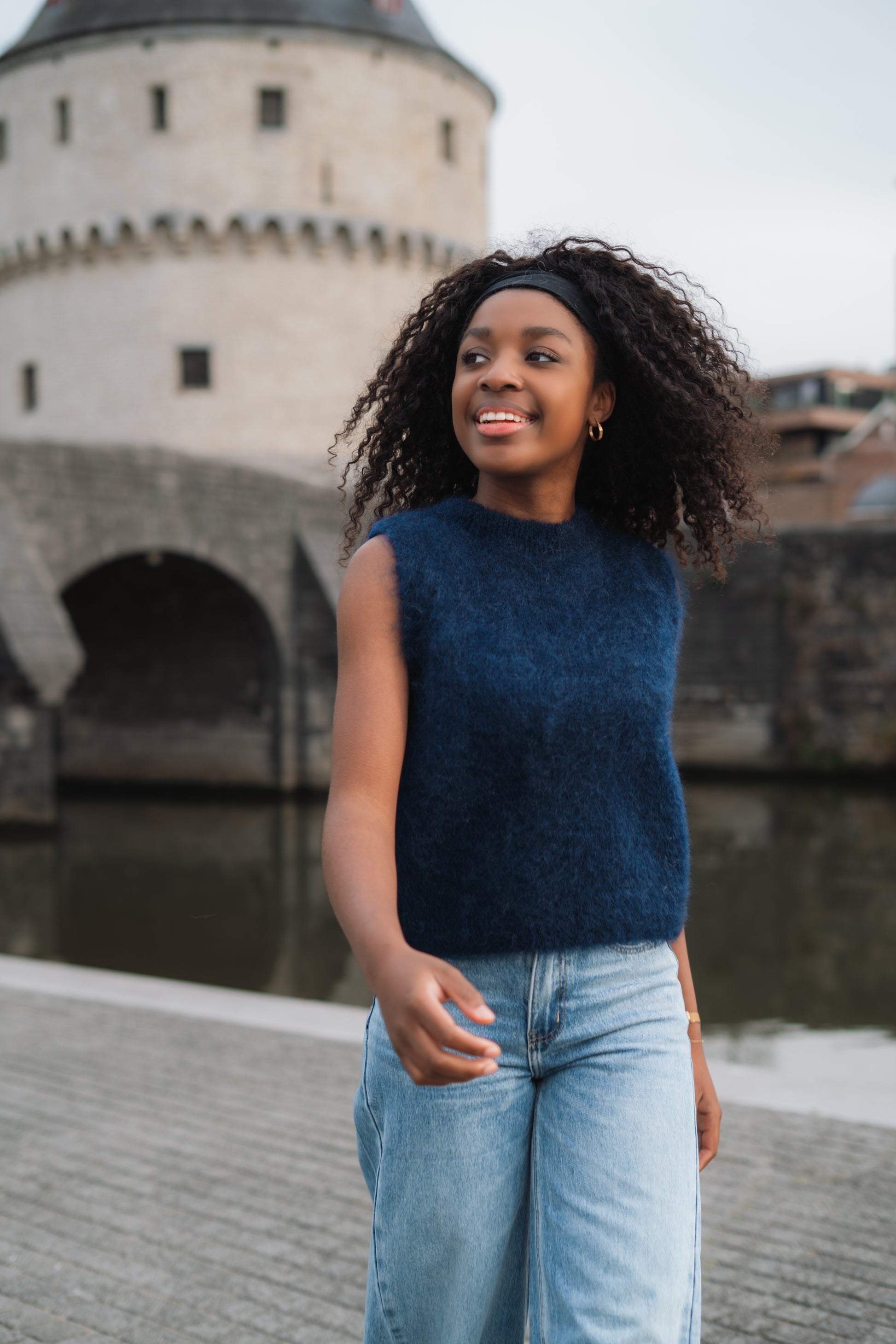 Deze wollen mohair debardeur biedt een zachte en luxueuze feel. Draag hem solo voor een elegante look of combineer met een blouse of pull voor een stijlvolle outfit.