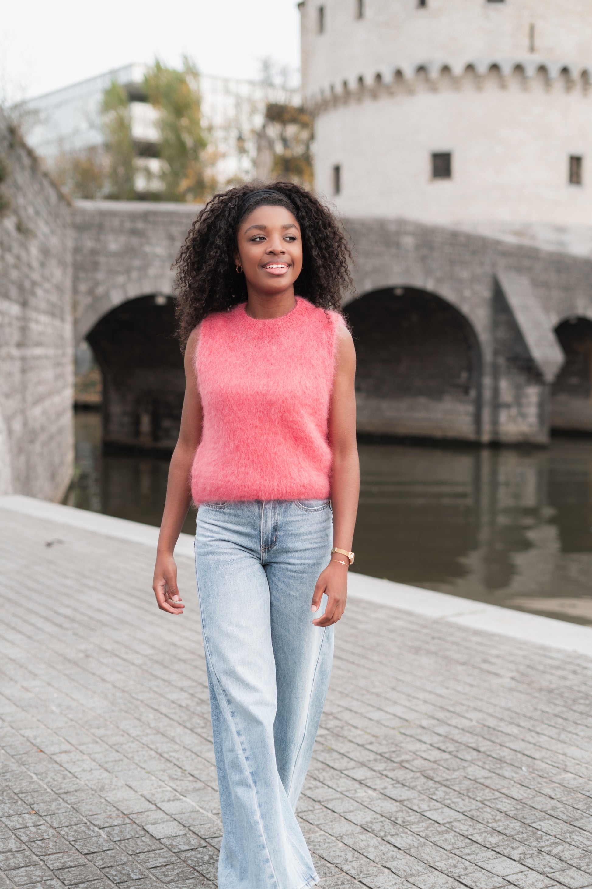 Deze wollen mohair debardeur biedt een zachte en luxueuze feel. Draag hem solo voor een elegante look of combineer met een blouse of pull voor een stijlvolle outfit.