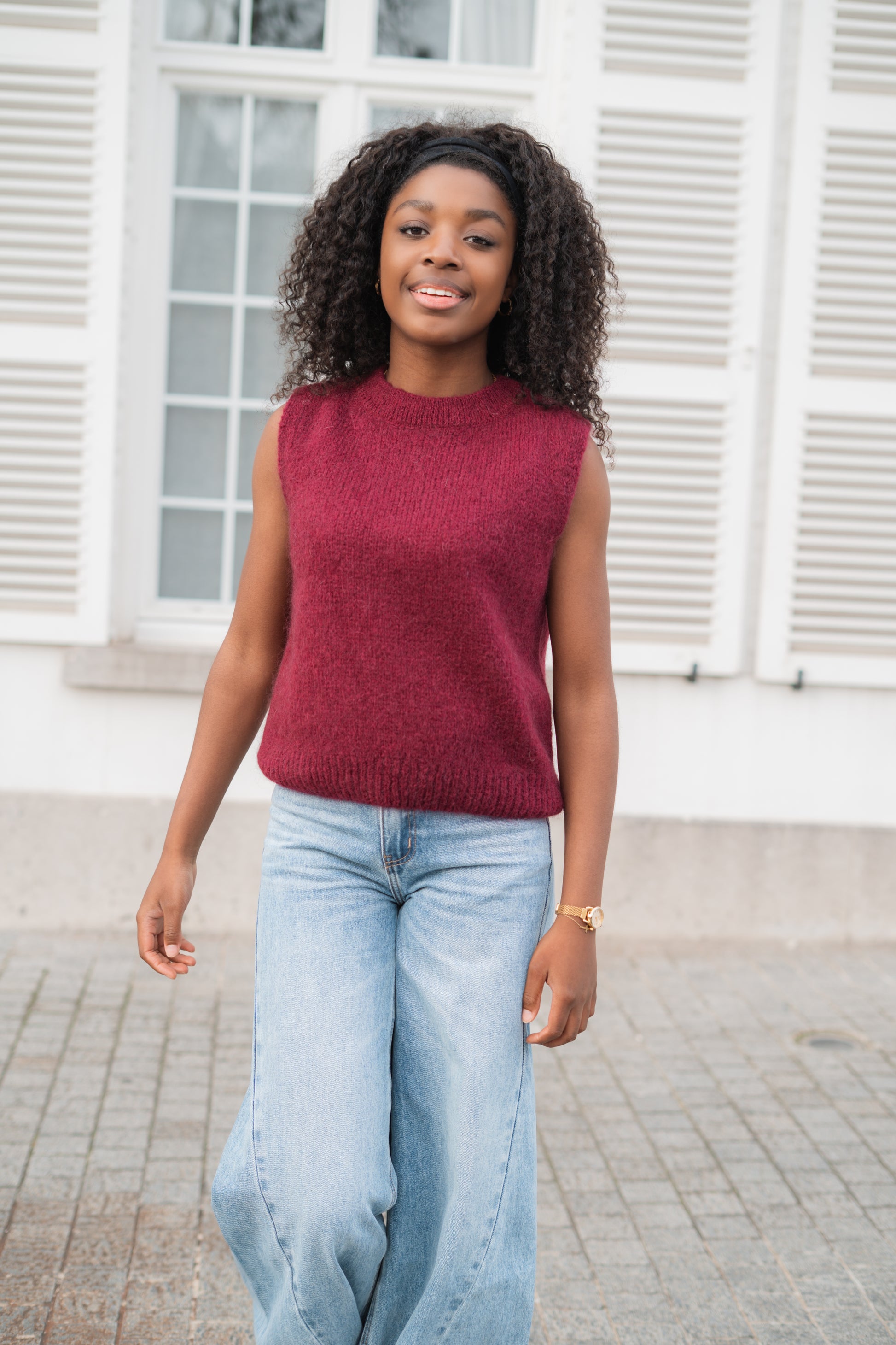 Onze wollen debardeur is een veelzijdige basis. Draag er een t-shirt, blouse of hemd onder voor een comfortabele en stijlvolle look.