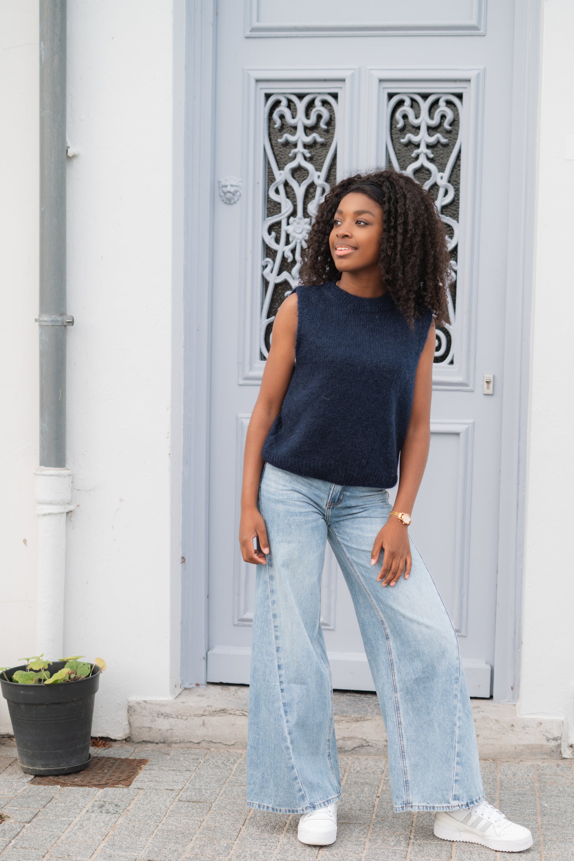 Onze wollen debardeur is een veelzijdige basis. Draag er een t-shirt, blouse of hemd onder voor een comfortabele en stijlvolle look.