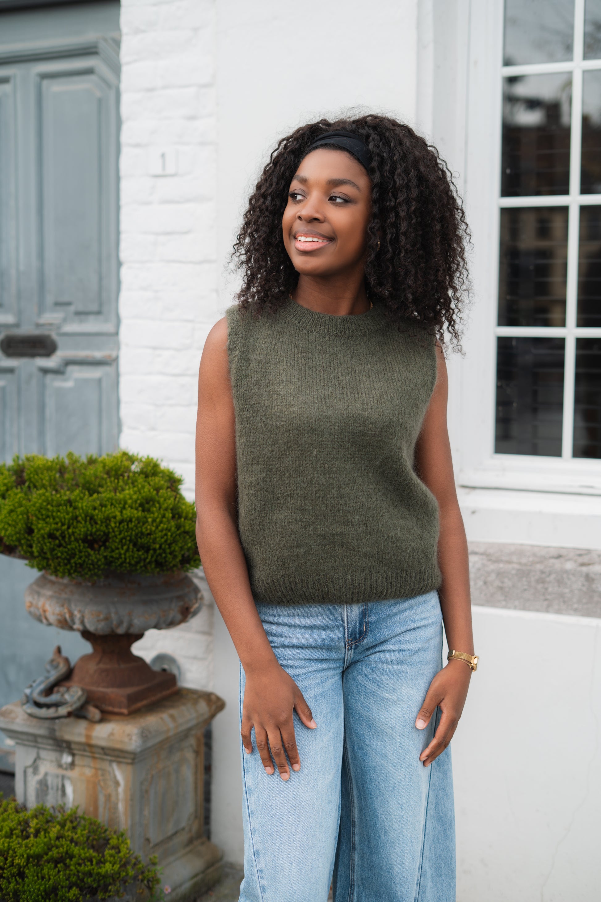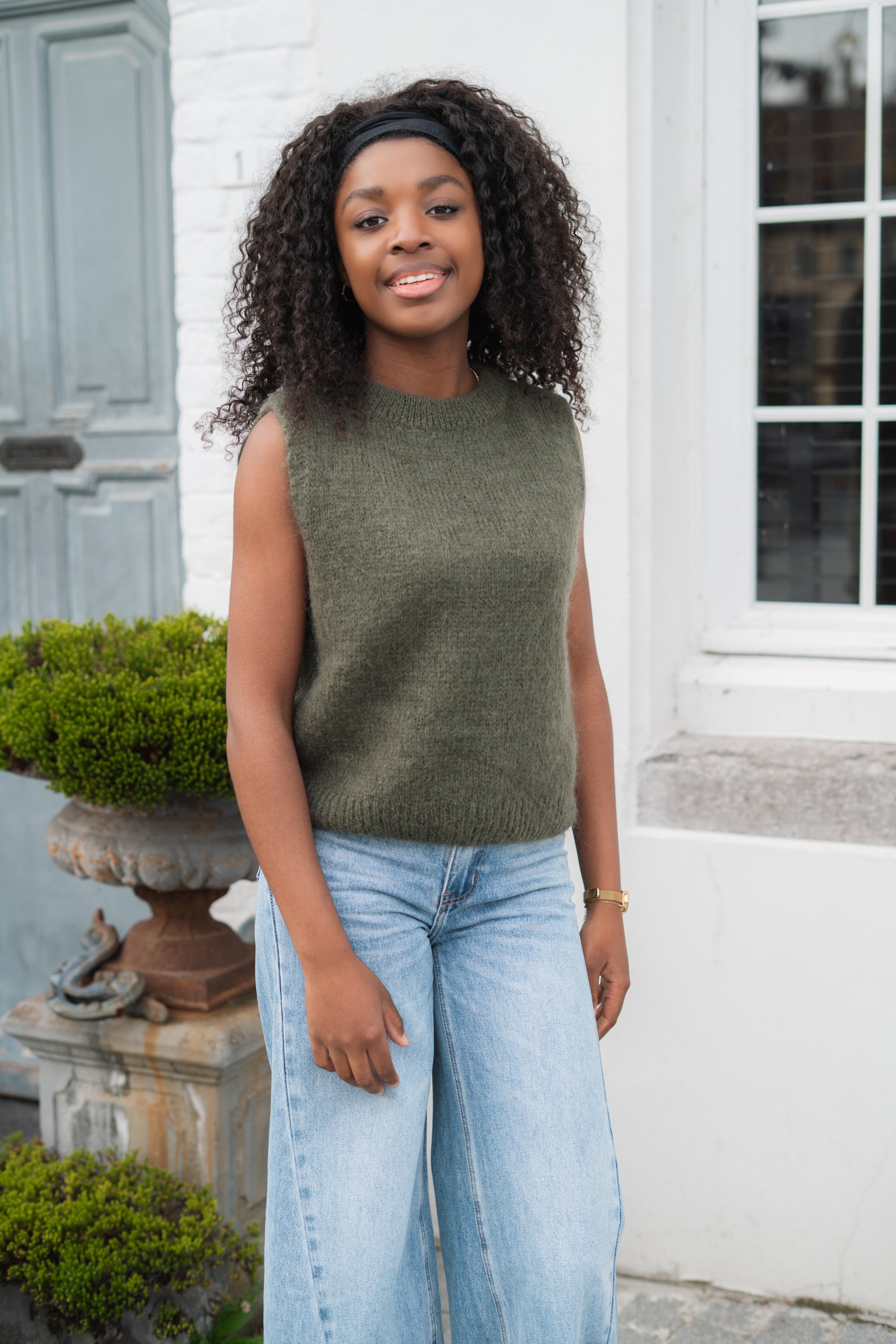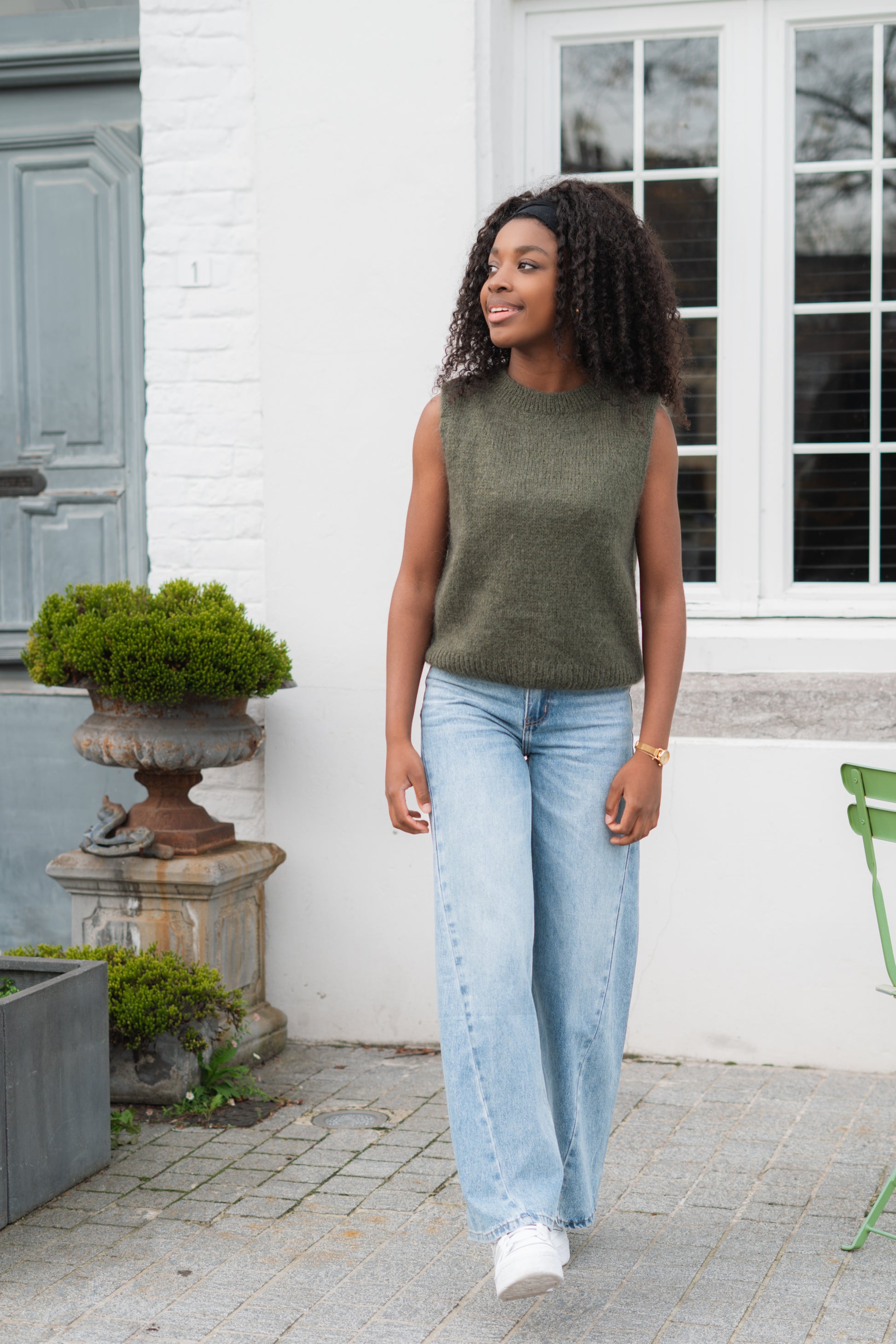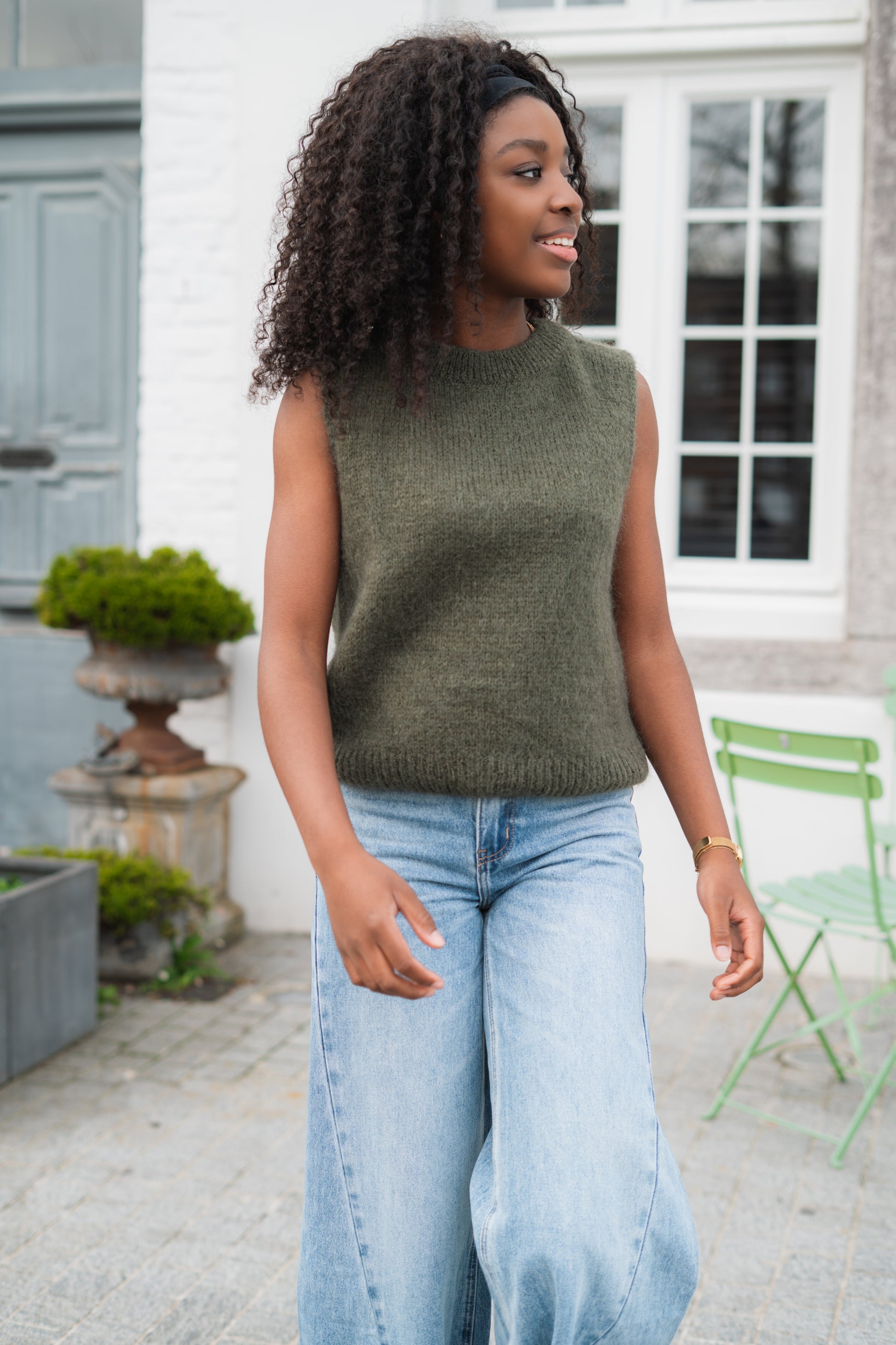 Onze wollen debardeur is een veelzijdige basis. Draag er een t-shirt, blouse of hemd onder voor een comfortabele en stijlvolle look.
