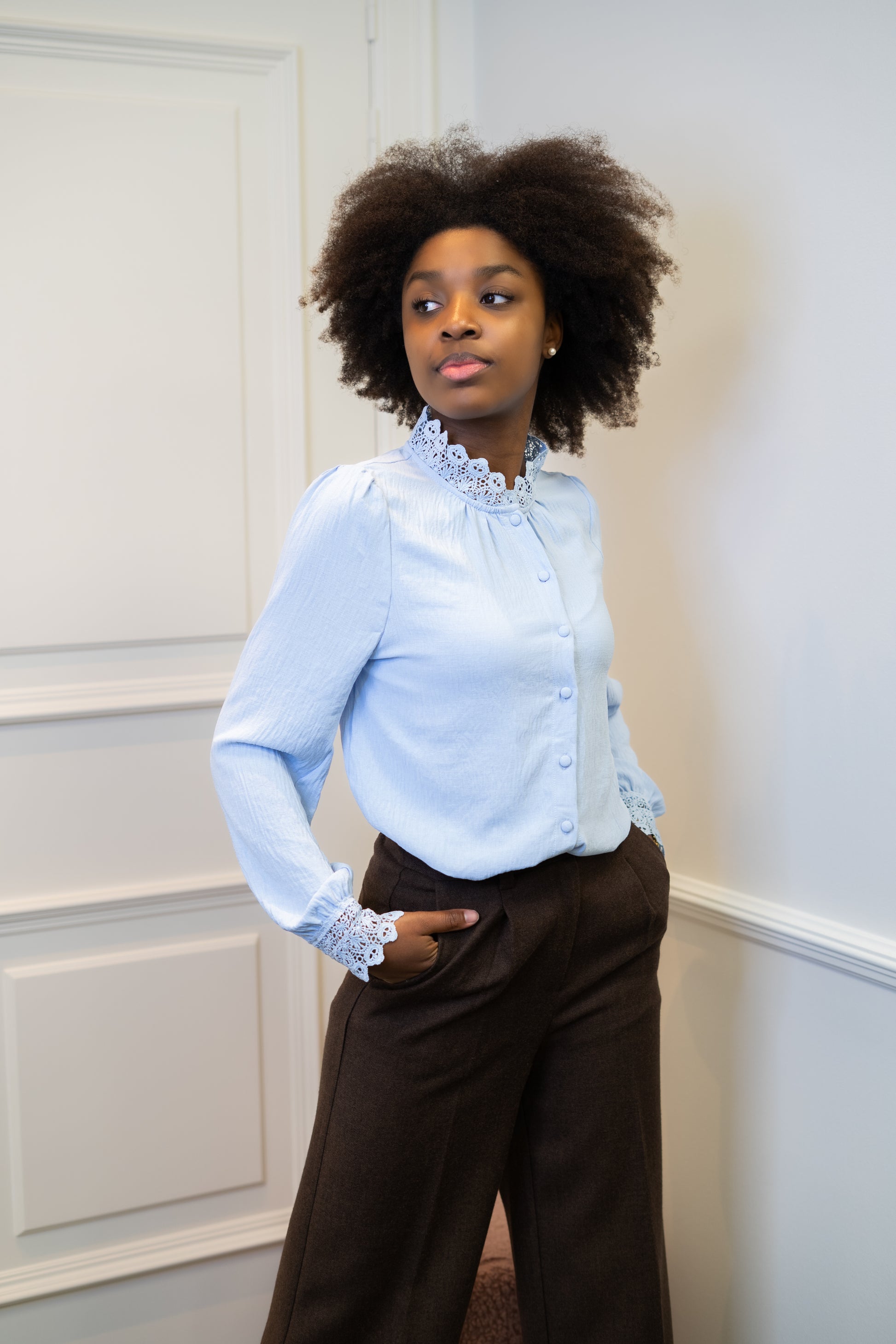 Deze blouse met details in kant straalt klasse uit. Combineer de blouse met een geklede broek, donkere jeans of een rokje voor een stijlvolle look.