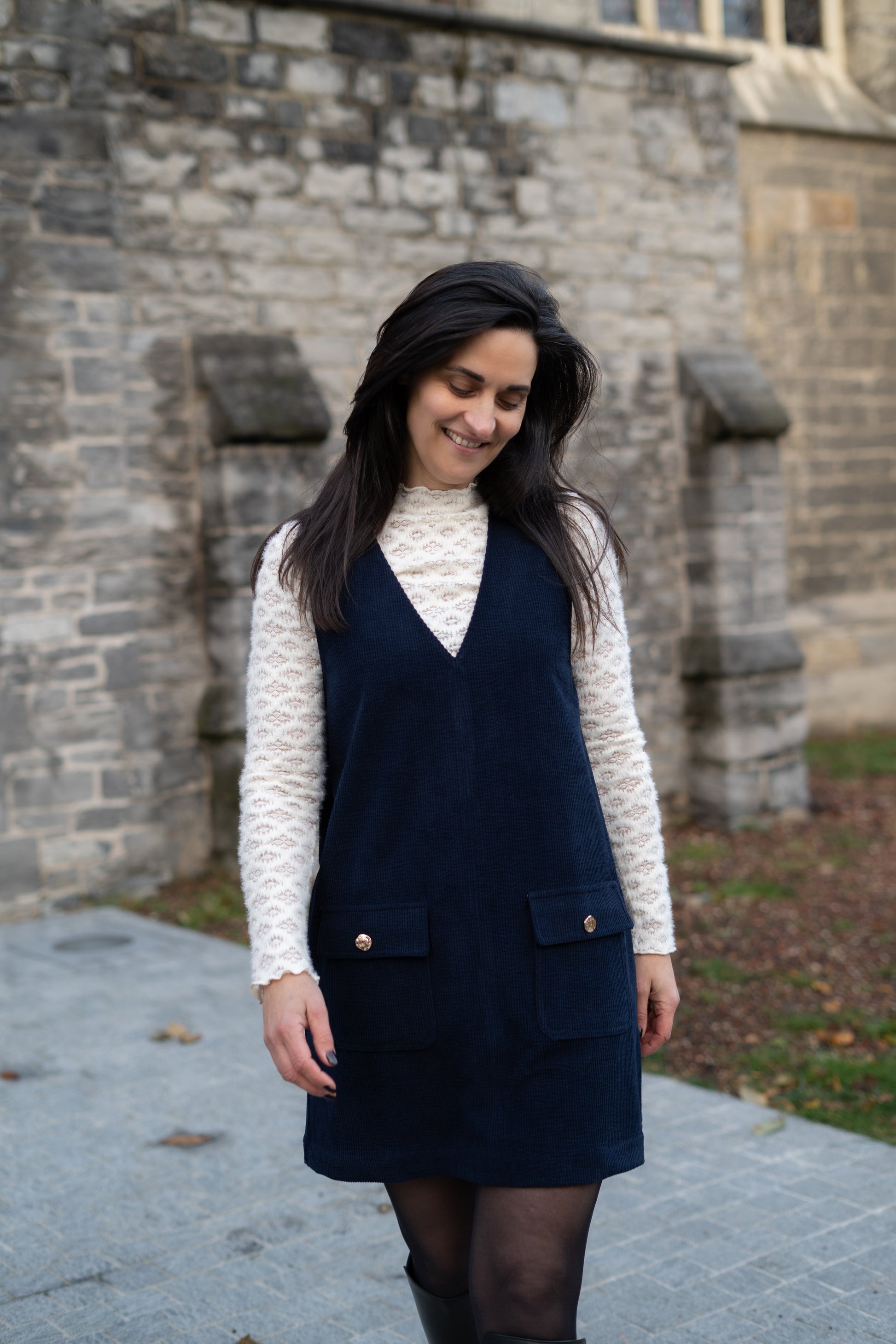 Deze jurk draag je gemakkelijk tijdens koele dagen. Draag er een hemdje of souspull onder voor een elegante winter look.