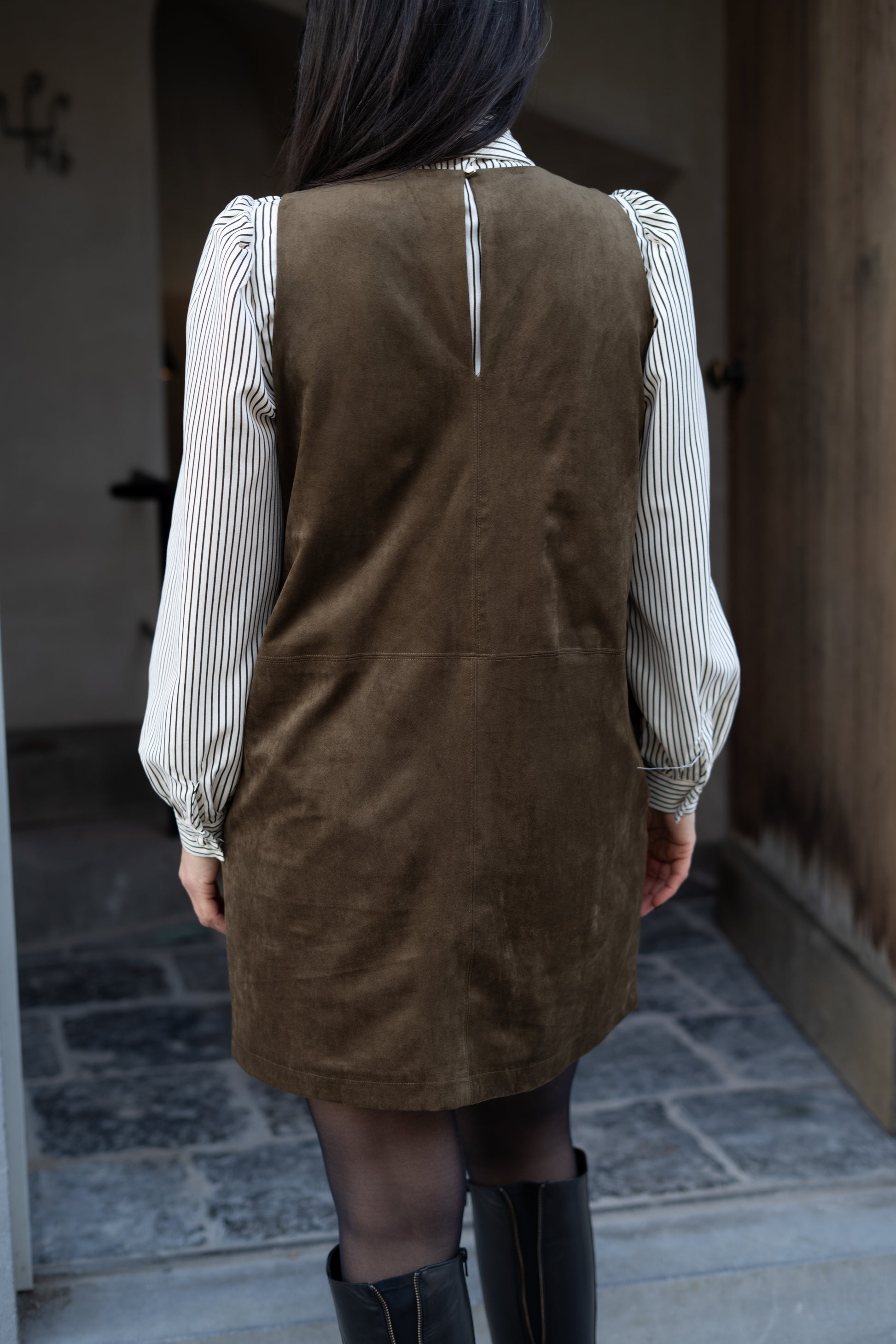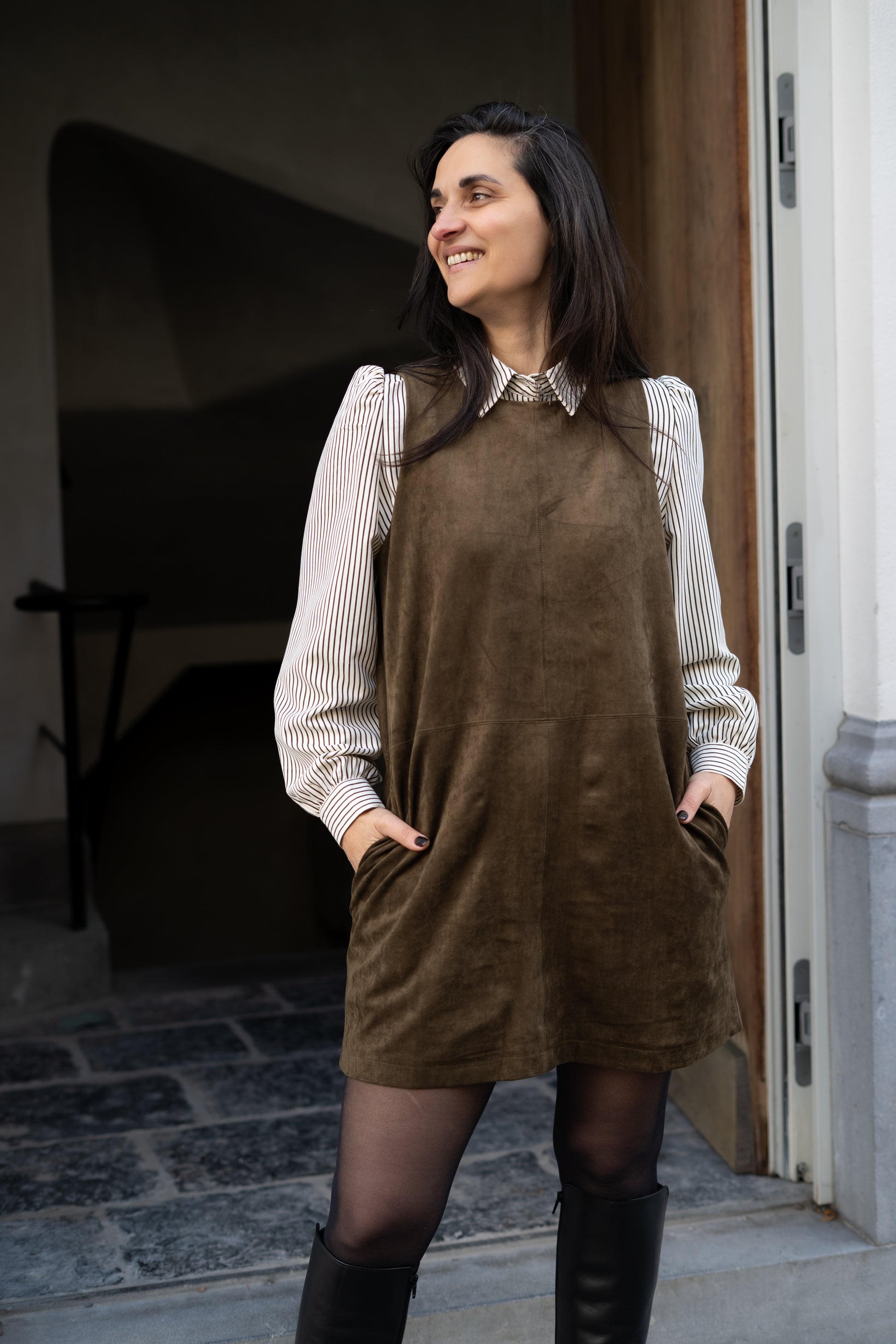 Deze jurk draag je gemakkelijk tijdens koele dagen. Draag er een hemdje onder voor een elegante look.